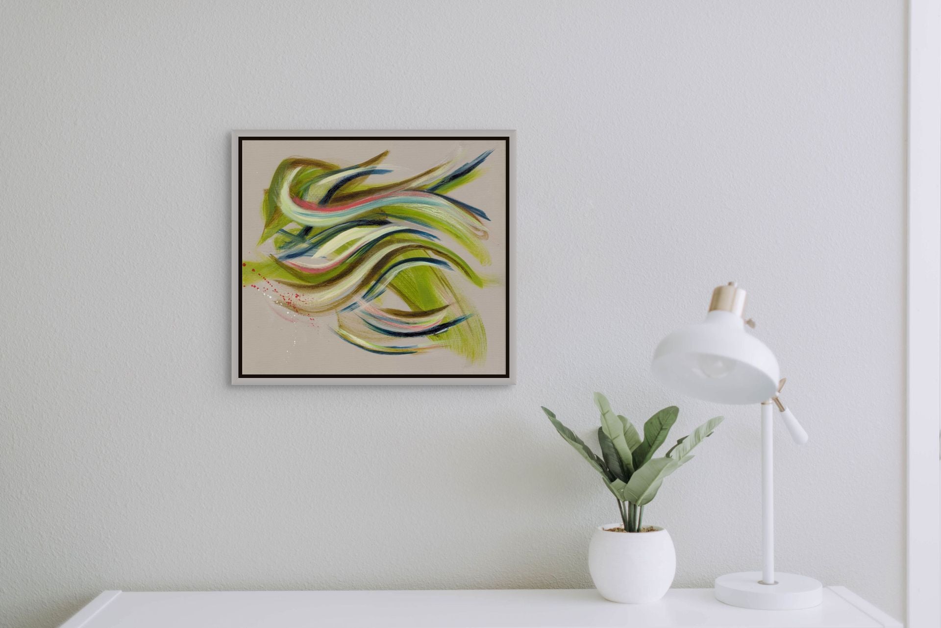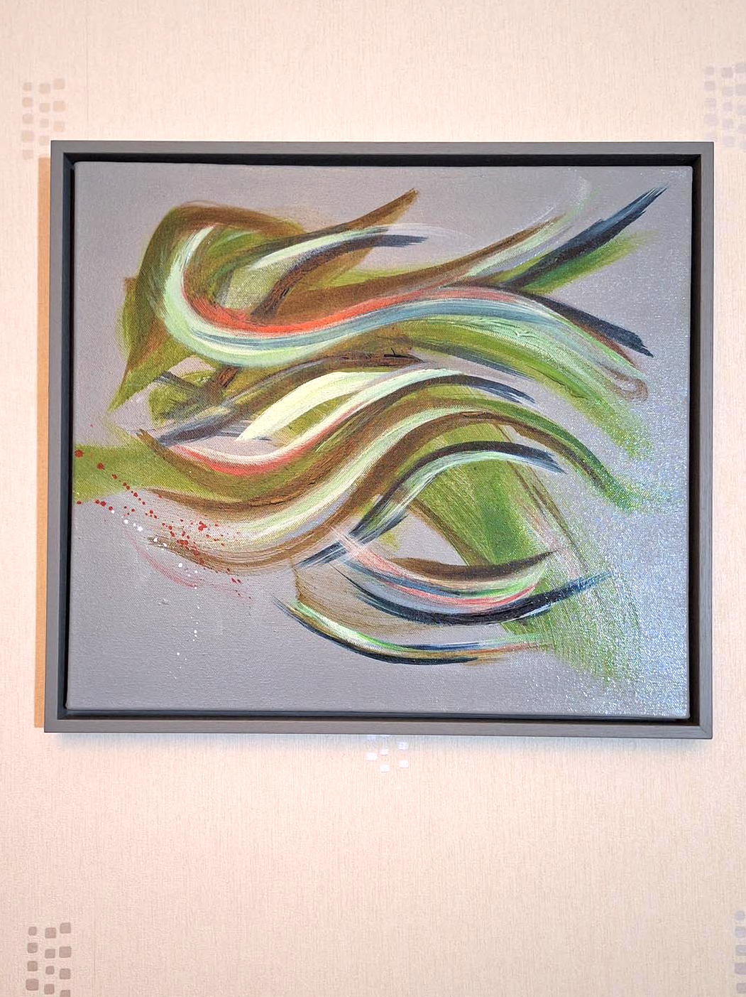 Ascending Beyond carries an upward momentum – a pull toward vitality. The painting’s cool blues and hot reds rise through layers of olive and sepia, as though colour itself were learning to breathe again. It’s an act of renewal, of lifting through quiet resistance.