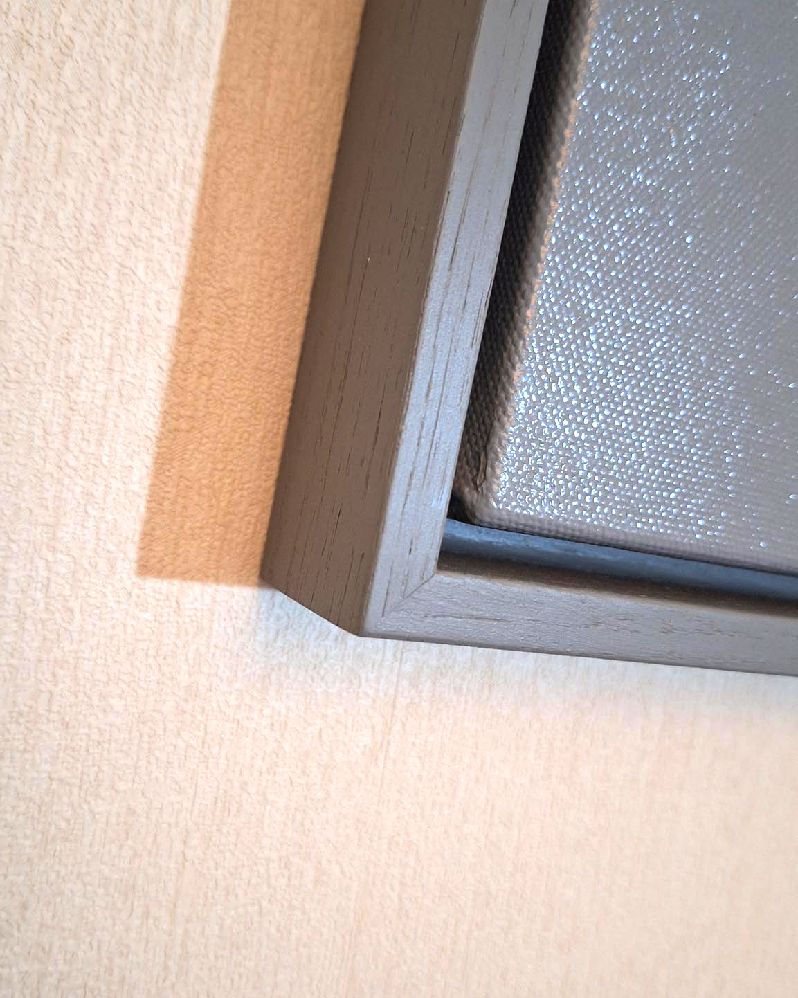 Framed in an Oak tray frame, painted in Farrow & Ball Plummett Grey (see final images).