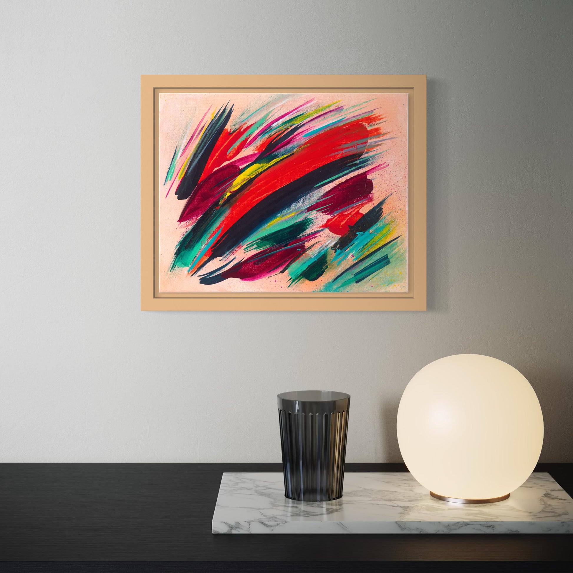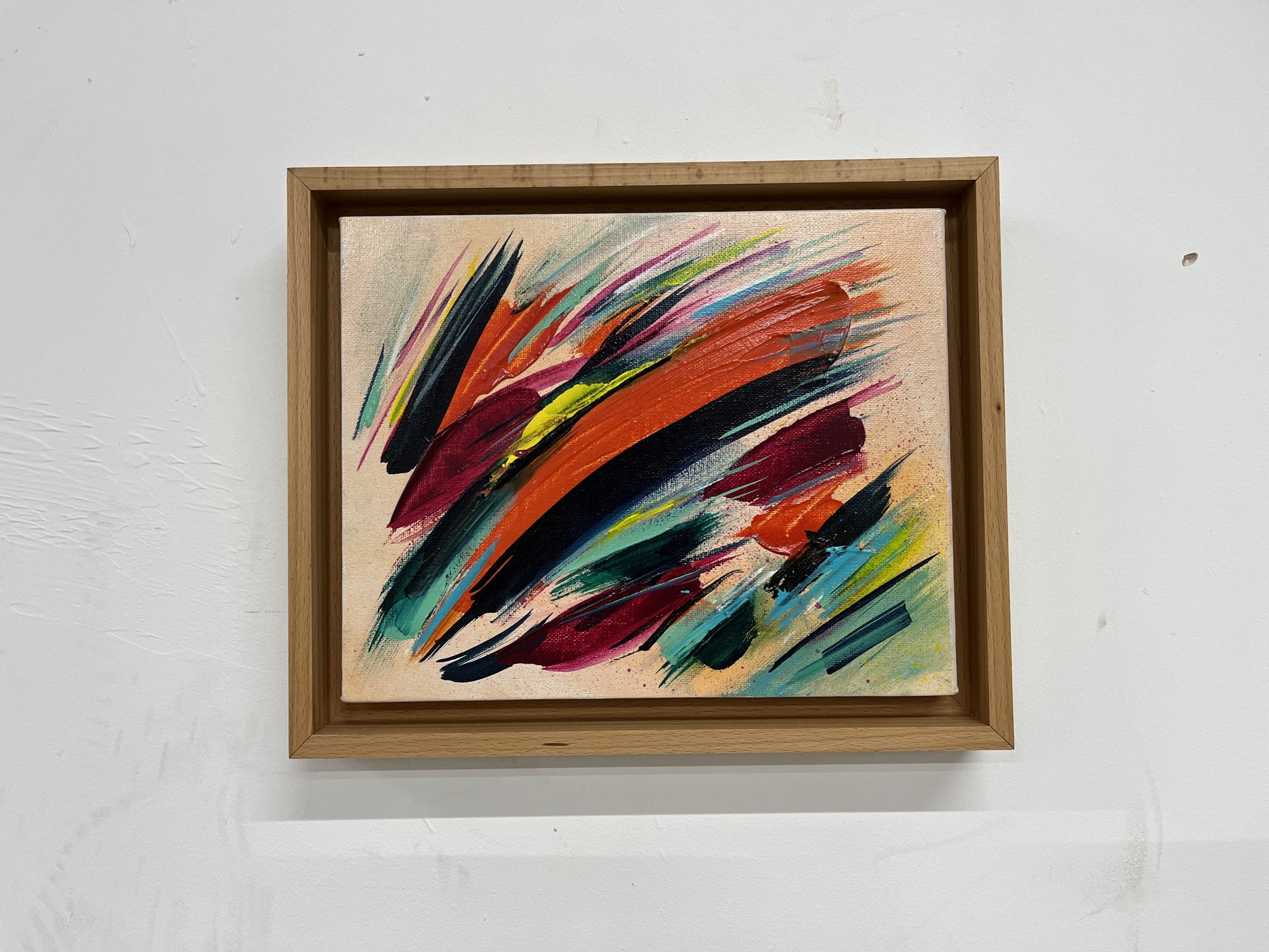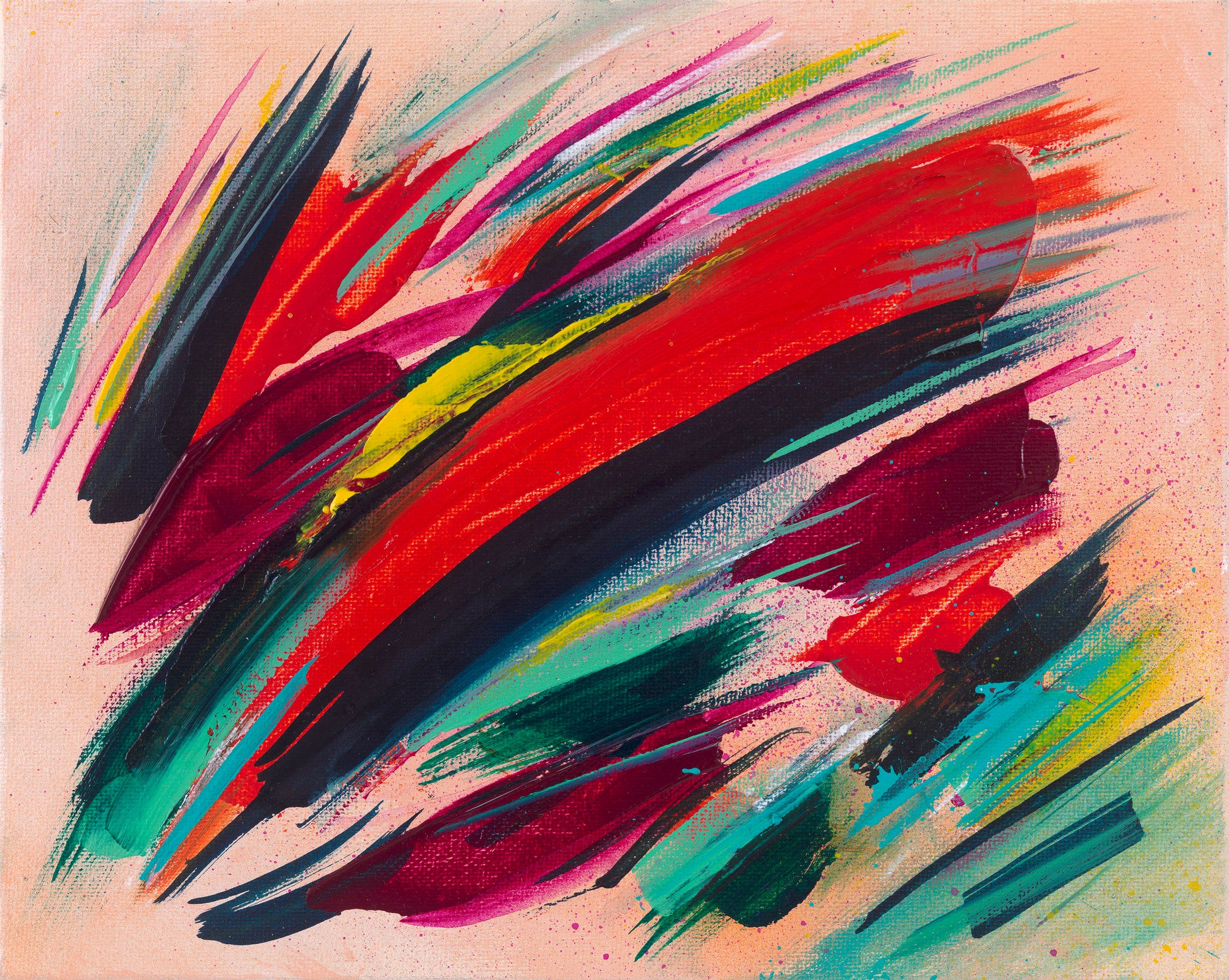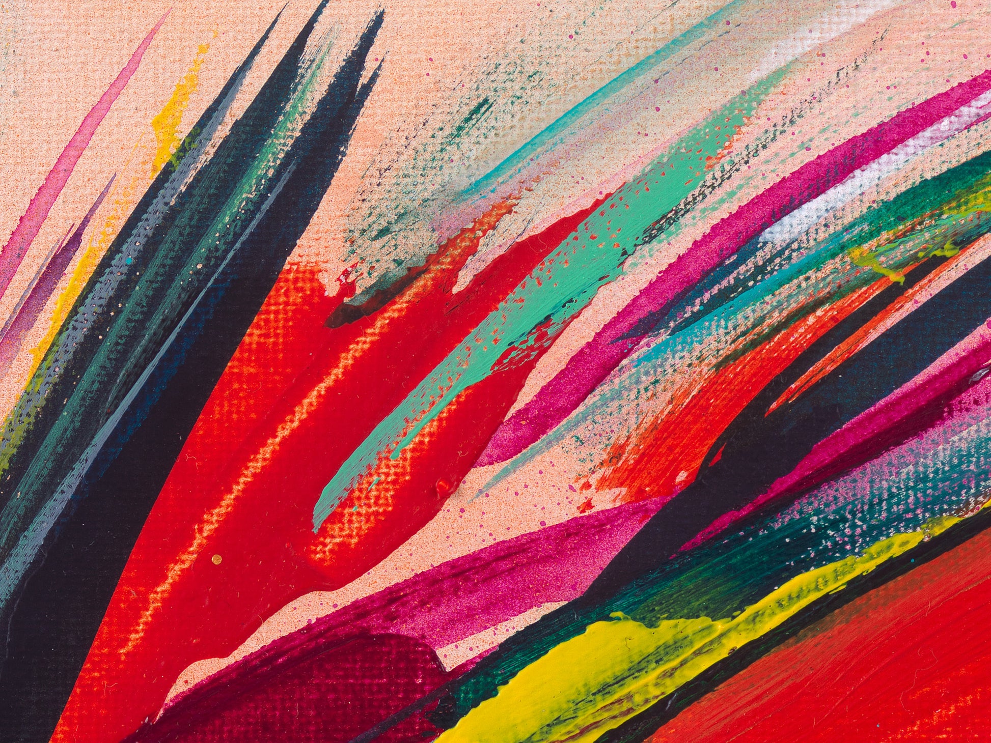 Euphoria captures joy through a vibrant colour palette, swirling celestial shapes and energetic brushstrokes.