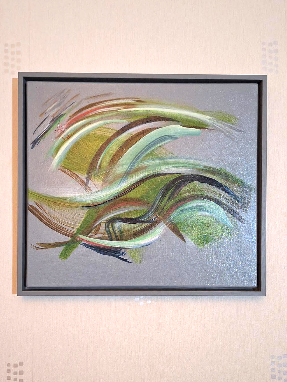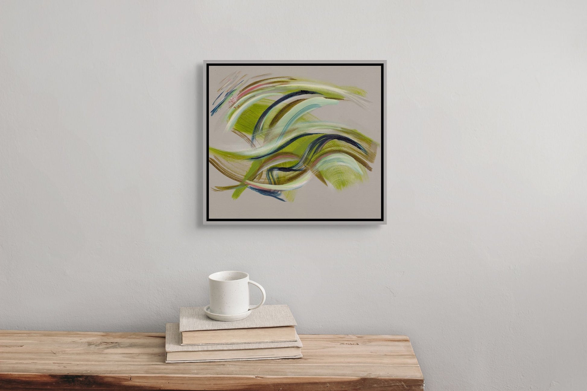 Floating Above captures the sensation of lift. The moment where movement breaks free from weight. Broad strokes and translucent veils of paint generate a sense of suspension, echoing the act of breathing or rising through space.