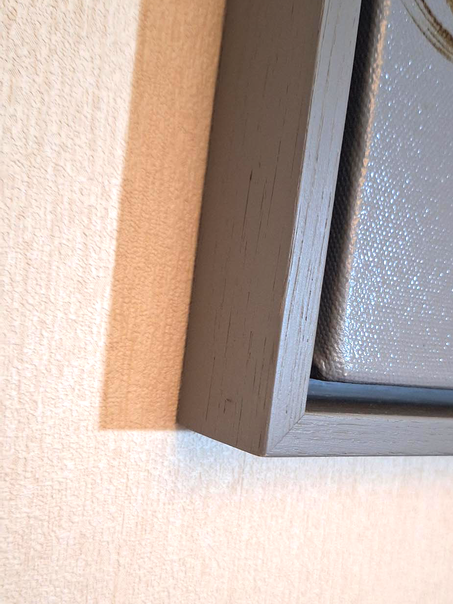 Framed in an Oak tray frame, painted in Farrow & Ball Plummett Grey (see final image).