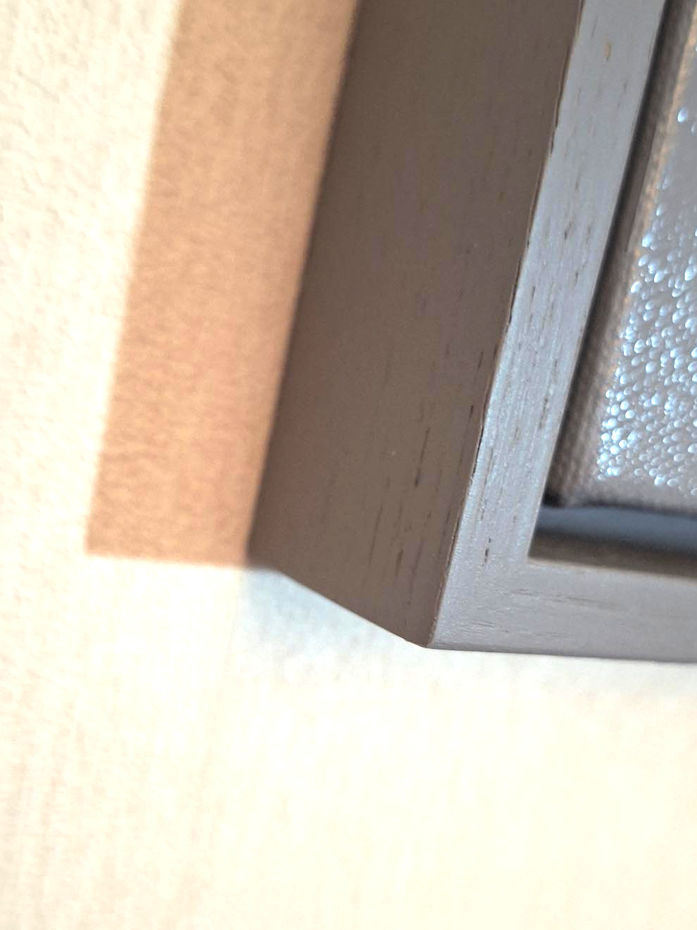 Framed in an Oak tray frame, painted in Farrow & Ball Plummett Grey (see final image).
