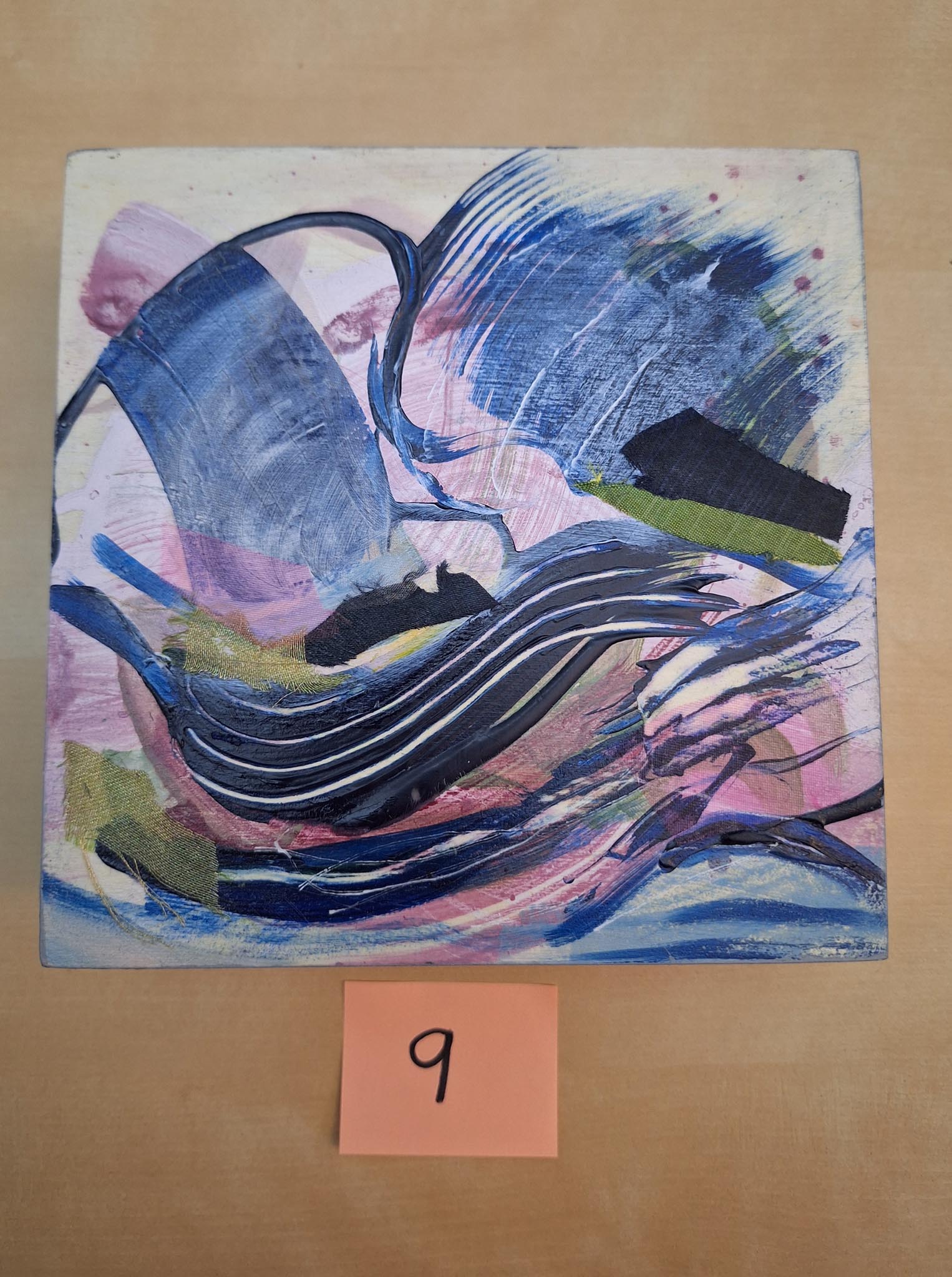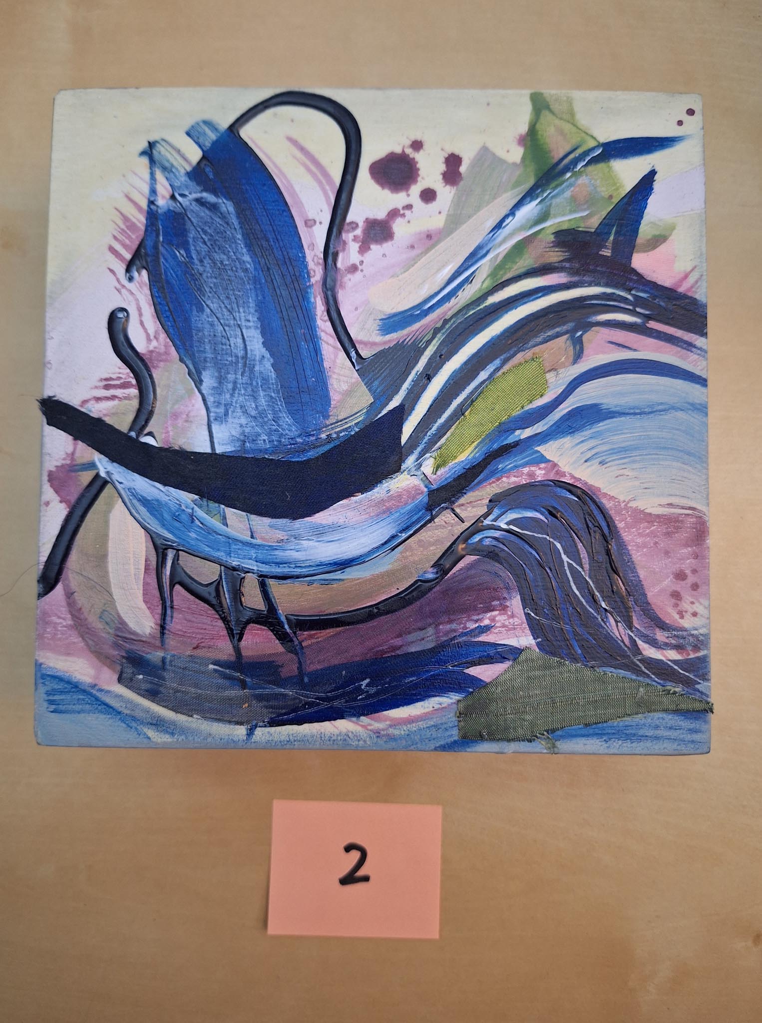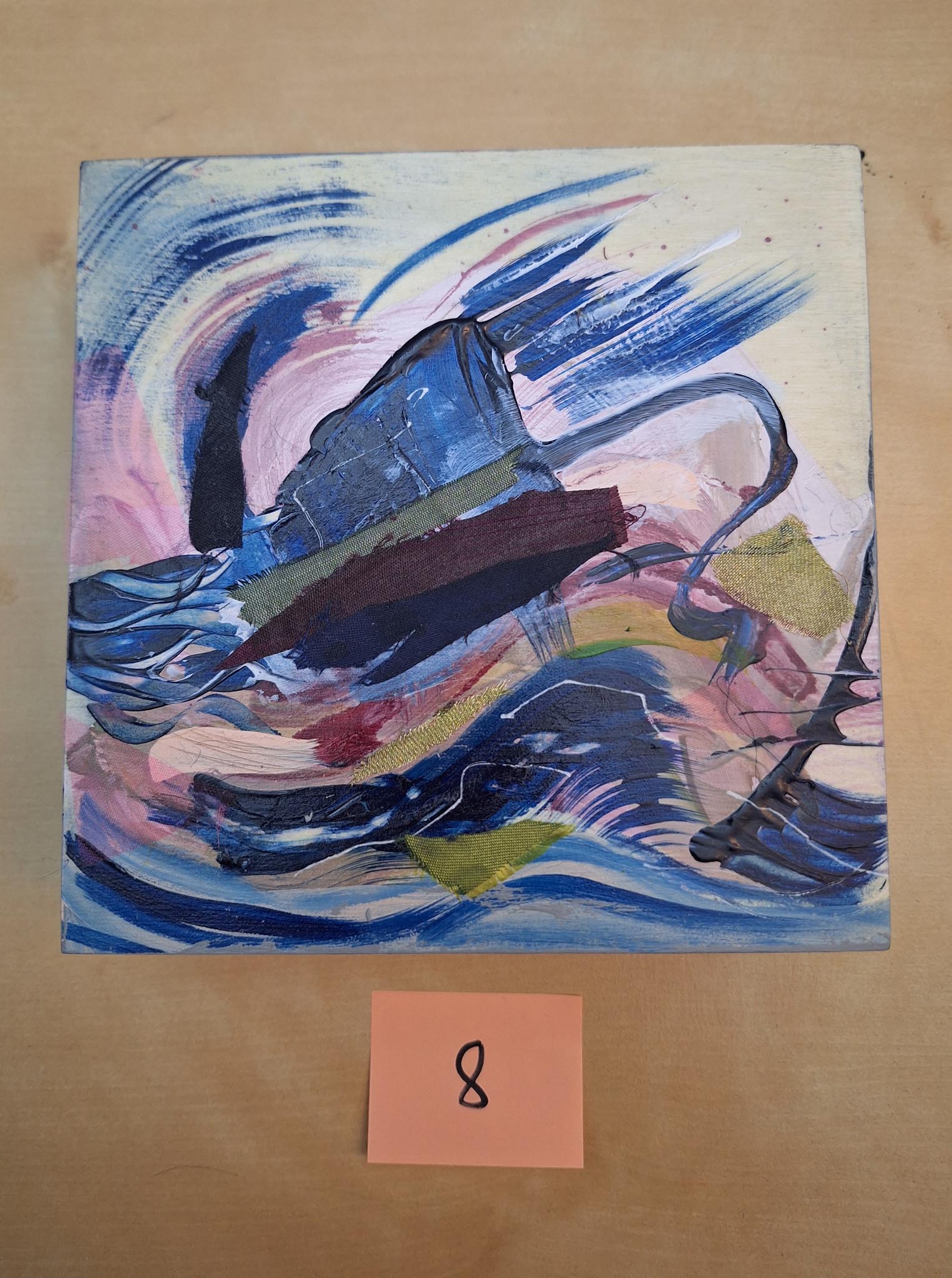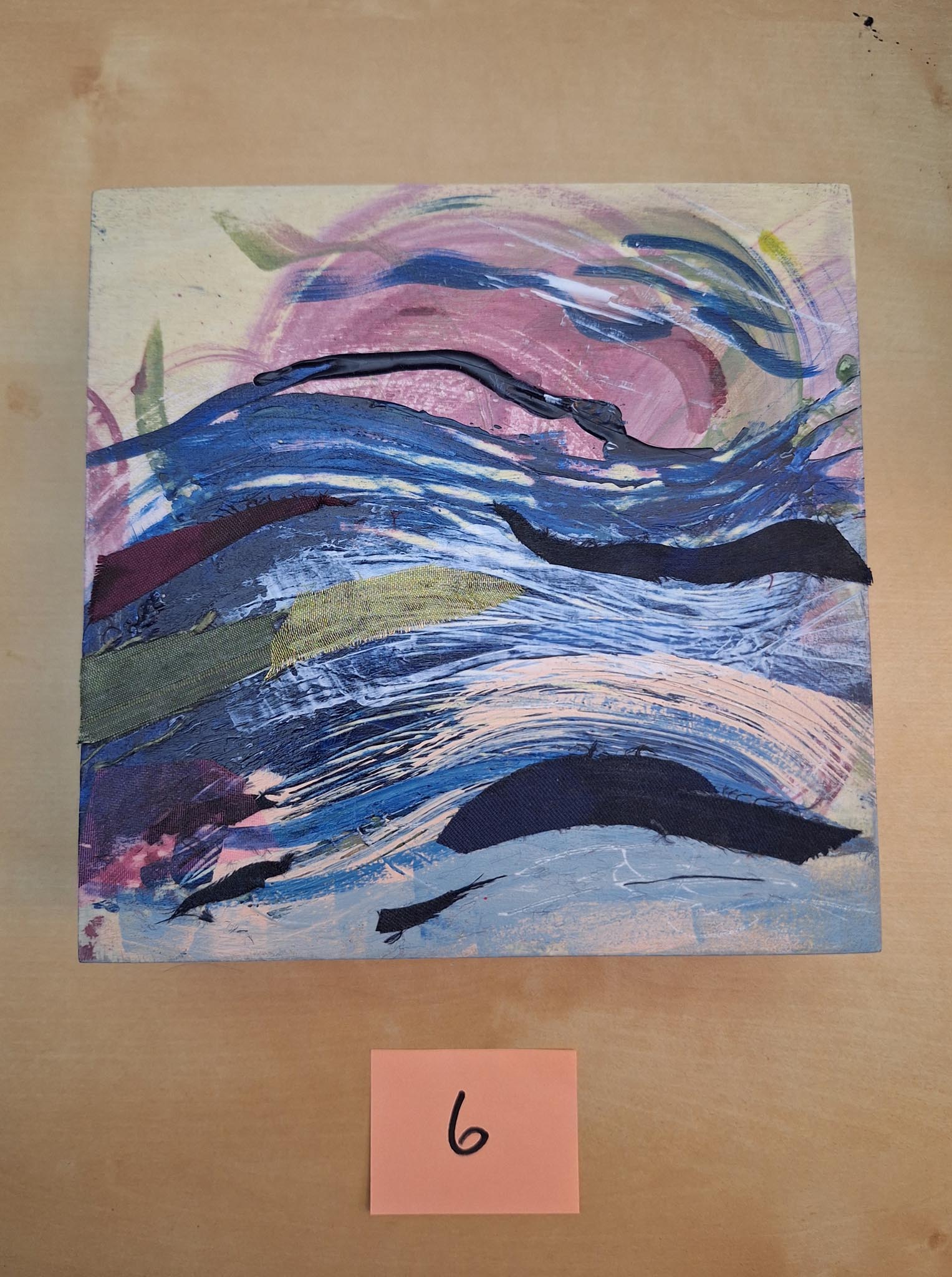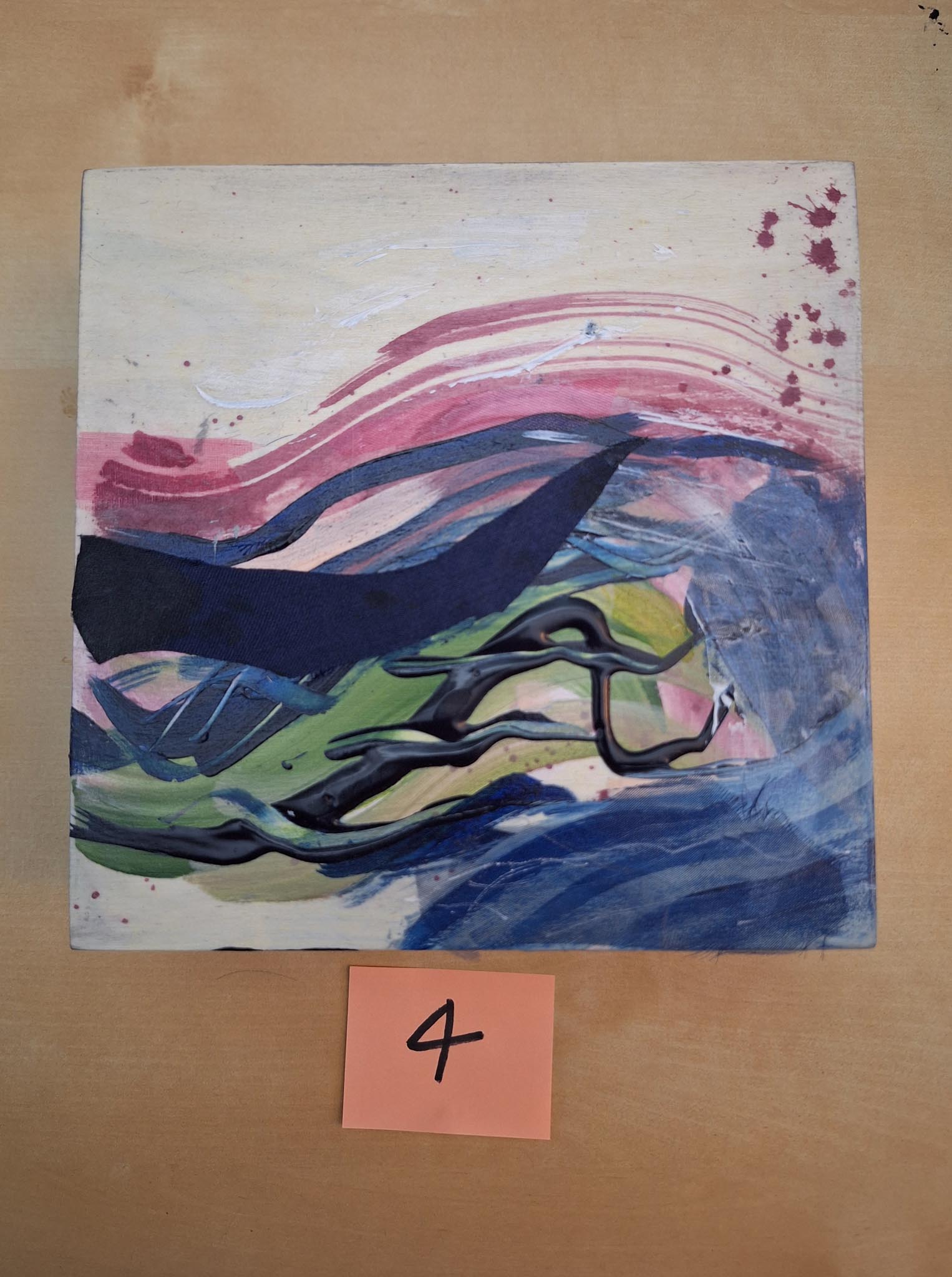 These 10 abstract works are my first works using fabric to ‘paint’ with, alongside acrylic ink and paint. In the past year, I've become fascinated with my local town of Macclesfield's silk heritage. Called Silkwood Roads, these pieces reference the ancient Silk Roads and the wood of the local Holly trees which kickstarted button making in the area – which led to the silk industry being central to Macclesfield.