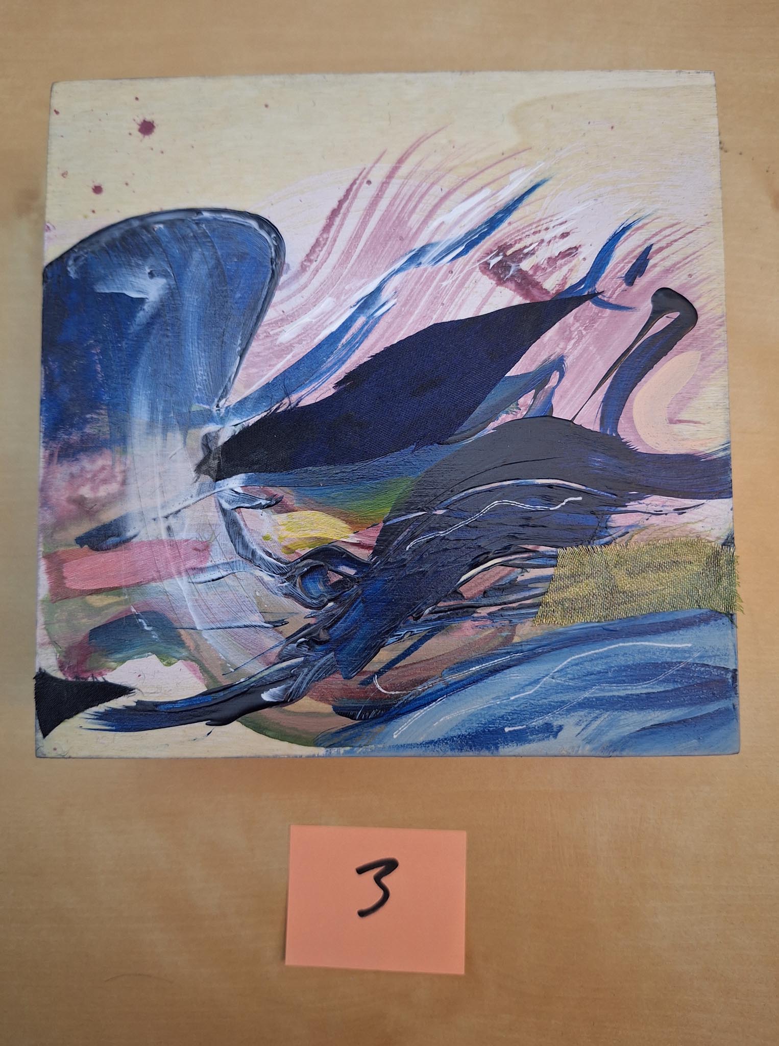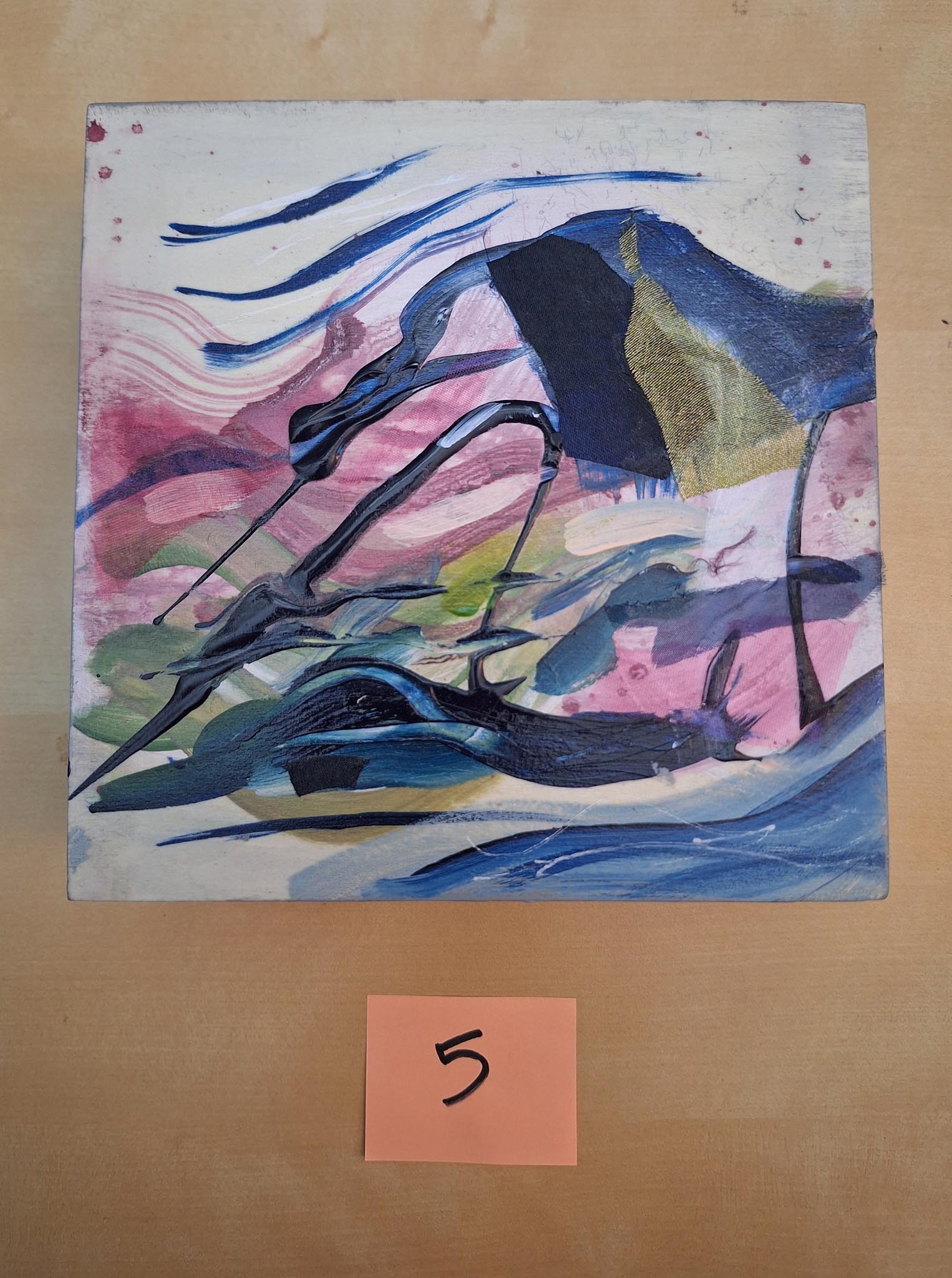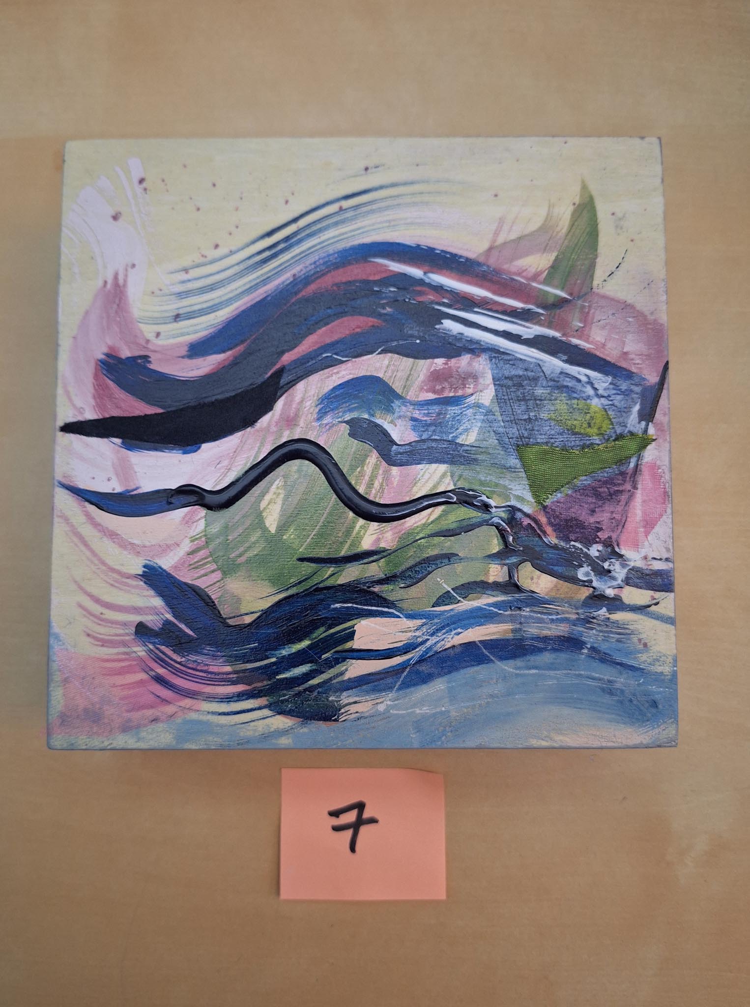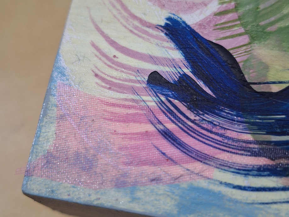 These 10 abstract works are my first works using fabric to ‘paint’ with, alongside acrylic ink and paint. In the past year, I've become fascinated with my local town of Macclesfield's silk heritage. Called Silkwood Roads, these pieces reference the ancient Silk Roads and the wood of the local Holly trees which kickstarted button making in the area – which led to the silk industry being central to Macclesfield.