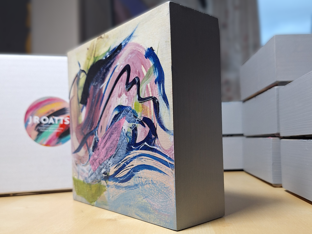 Finished on the side with a warm grey, and a sawtooth hanger on the back to go straight a nail or hook. Each one is completely individual and comes with a mini Certificate of Authenticity and comes in sticker-branded box.