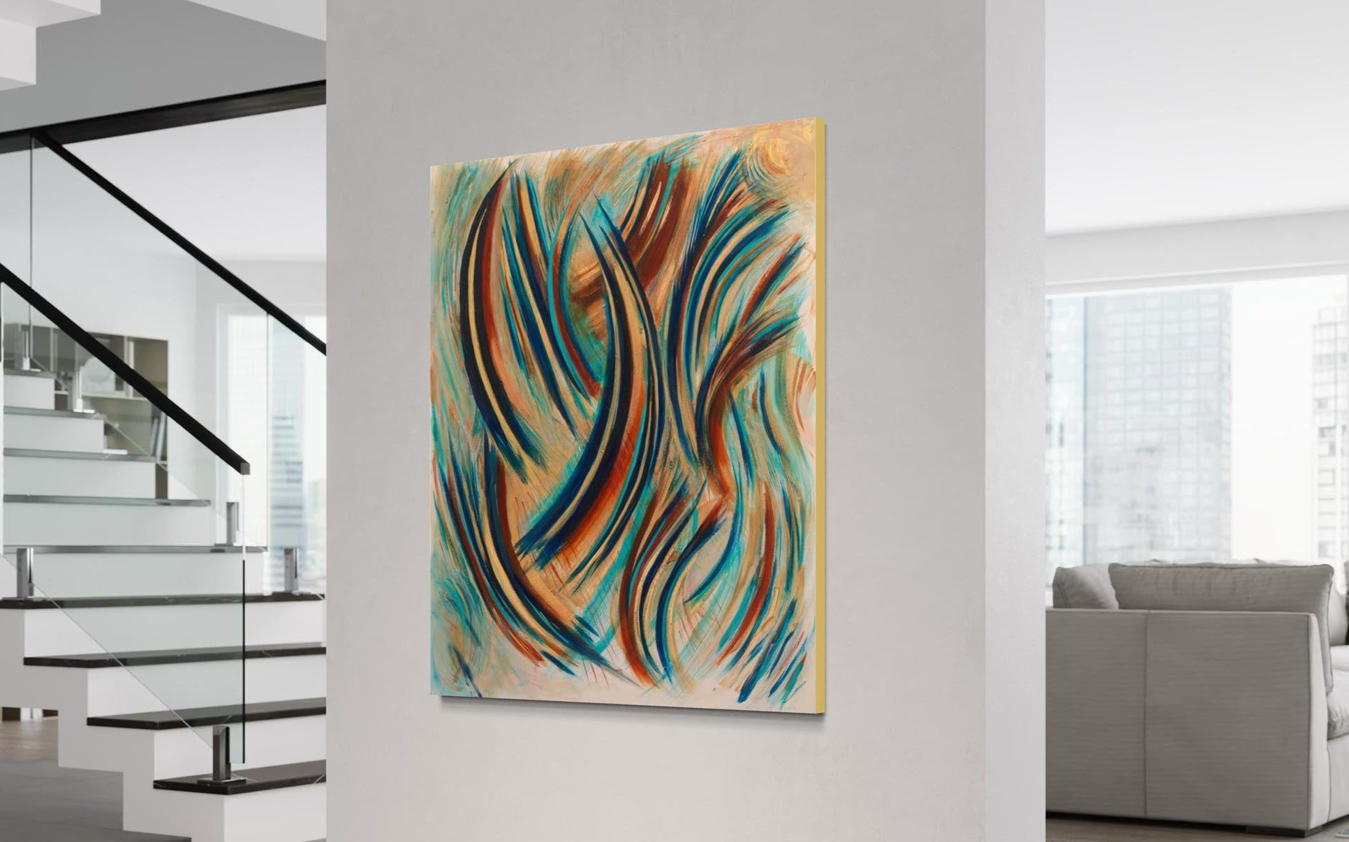 The painting is finished with a satin varnish to ensure the metallic gold paint glistens under the light throughout the day. Videos or more images on request.